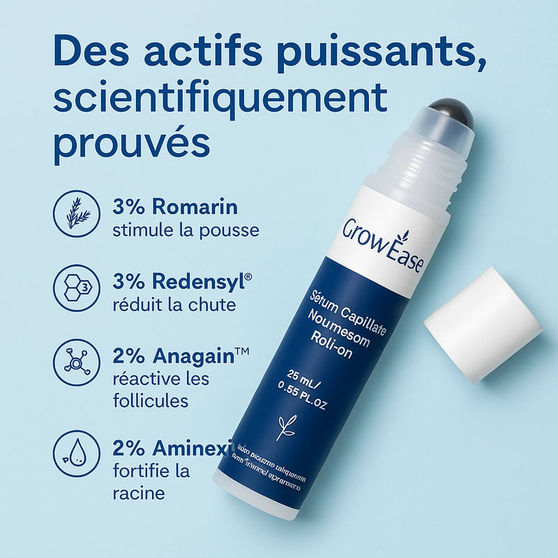 Absolument ! GrowEase, c'est bien plus qu'un simple sérum. En stoppant la chute et en boostant la pousse, il vous aide à redécouvrir la force et la densité de vos cheveux. Imaginez-vous avec une chevelure qui reflète votre vraie signature, celle qui vous donne cette allure confiante et cette fierté chaque matin. C'est le coup de pouce que vous méritez pour vous sentir pleinement vous-même, sans compromis.